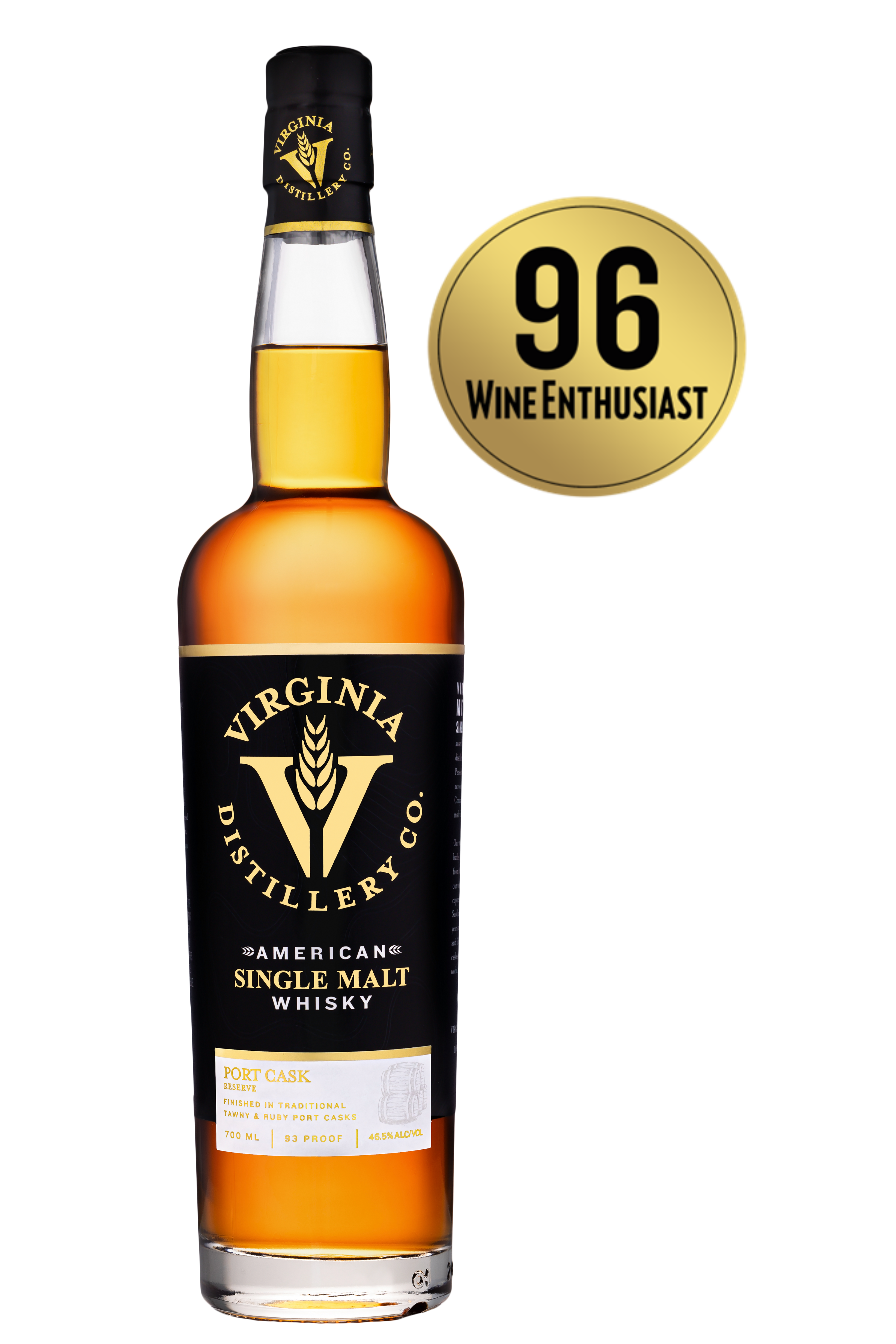 Virginia Distillery Co. ist die einzige amerikanische Single Malt Destillerie, die ausschließlich Kupferbrennblasen und gebrauchte Fässer – traditionelle schottische Methoden – verwendet und diese mit dem einzigartigen Klima der Blue Ridge Mountains in Virginia kombiniert, um einen unverwechselbaren Whisky zu schaffen. Abgefüllt wird der Virginia Distillery American Single Malt Port Cask Reserve, nach 4 Jahren in First-Fill-Ex-Bourbon-Fässern und einem Jahr Finish in